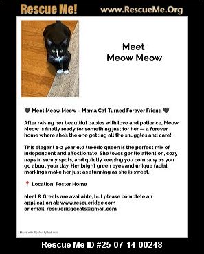Read more »25-07-14-00248C01Meow Meow (f)(female)Domestic CatMonmouth County, Howell, NJID: 25-07-14-00248